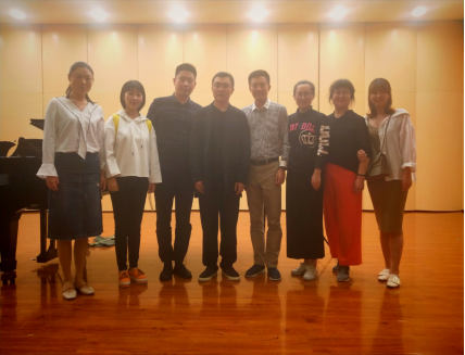 徐鑫鑫老师、艾赛赛老师与中央音乐公司张佳林老师合影