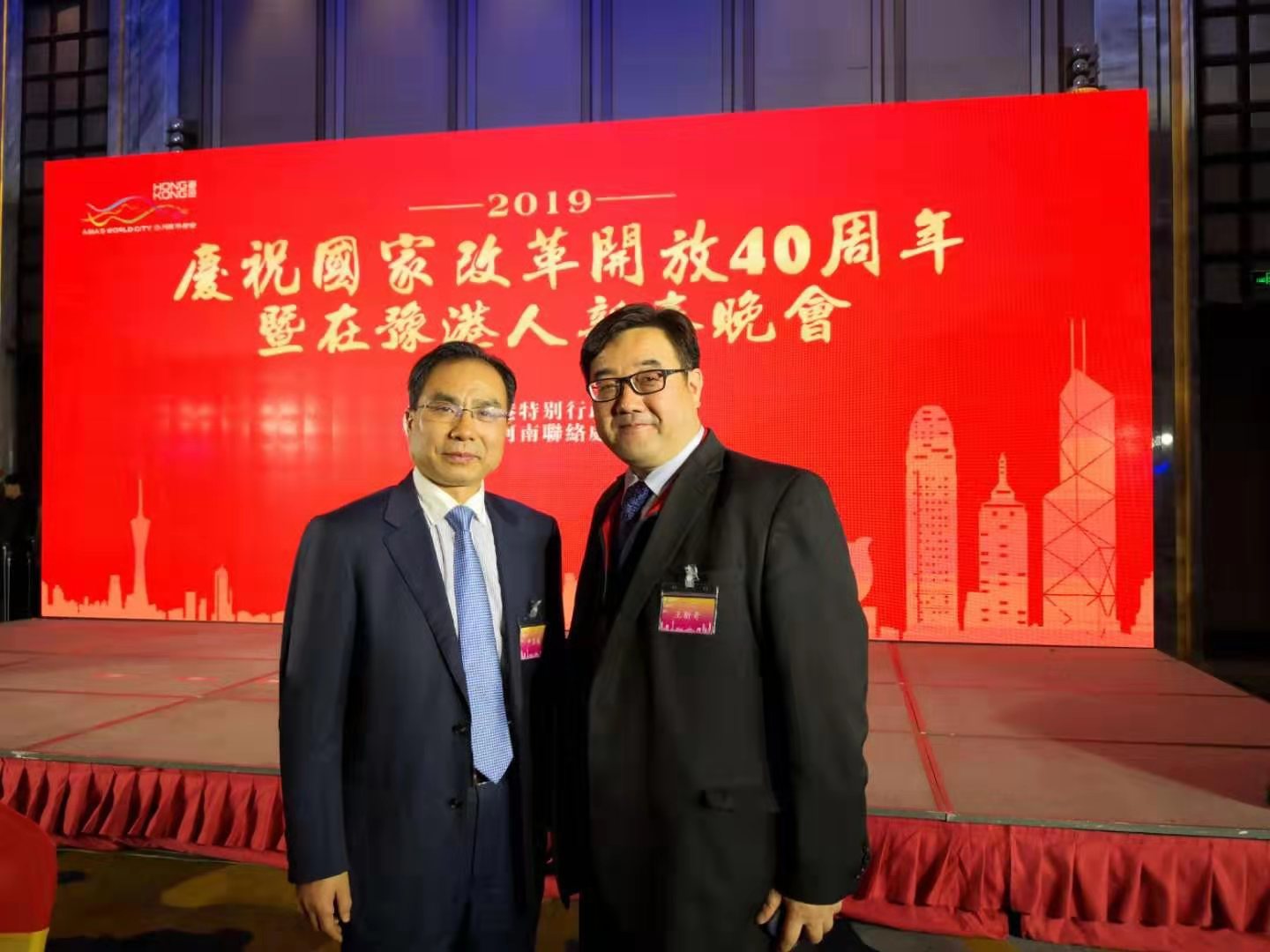 3月13日晚,庆祝国家改革开放四十周年暨在豫港人新春晚会在郑州市万达文华酒店举行,公司执行董事王新奇博士受邀参加了此次晚会。出席本次晚会的领导有河南省政协港澳台侨和外事委员会主任杨京伟、河南省政府副秘书长尹洪斌、香港特区政府驻武汉联络处主任冯浩贤先生、香港特区政府驻河南联络处主任刘锦泉先生、副主任周立根先生。
