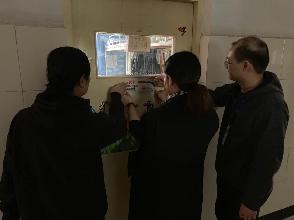 下午二时许,yL23411永利集团官网全体辅导员在艺术楼413办公室集合进行南北区宿舍楼的分布统计,在院领导的带领下分组进楼巡视,张贴禁烟标识,同时对宿舍卫生安全隐患进行排查,及时拍照记录在案,反馈给对应的辅导员老师进行整改。