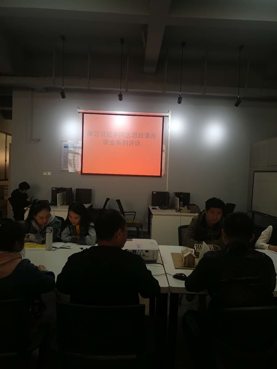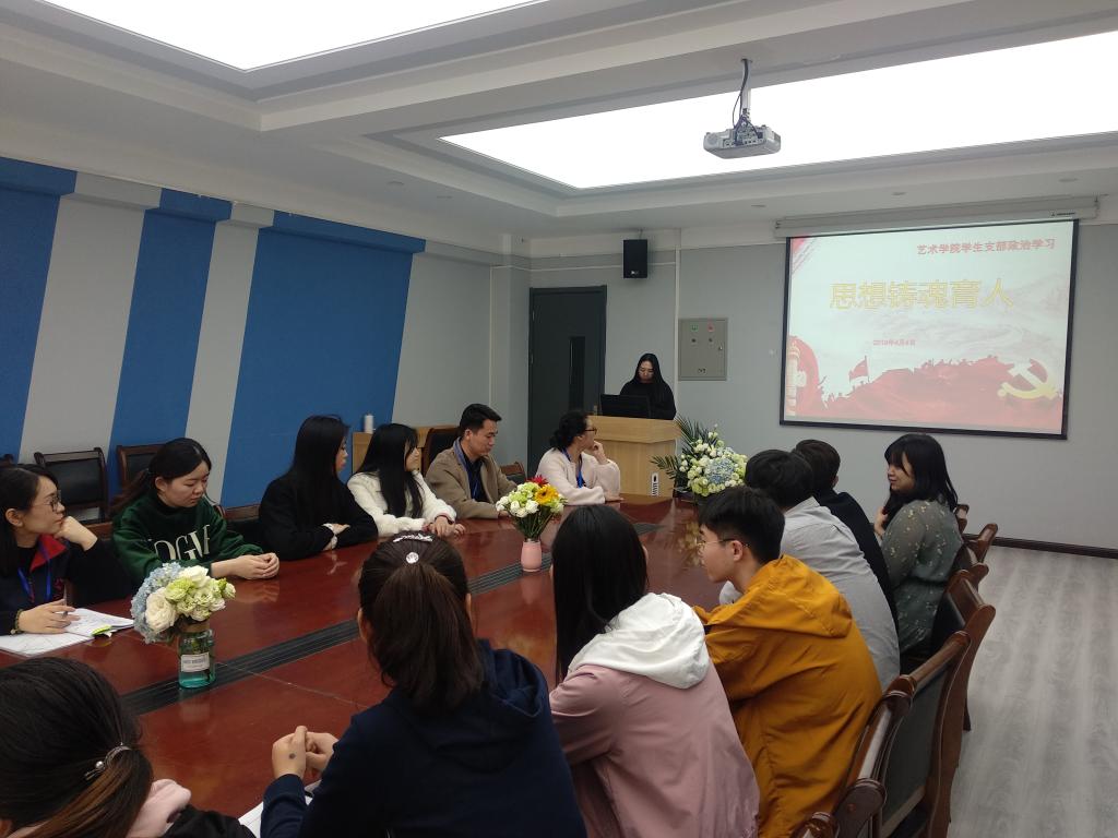 公共艺术教研室于艺术楼414召开政治学习。支部书记王洁带领大家认真学习习近平总书记在公司思想政治理论课教师座谈会上发表的重要讲话,期望支部同志发挥教师的积极性、主动性、创造性,以身作则,以自己对国家对社会对人民的深情来激励、引导员工,培养员工的爱国情怀。