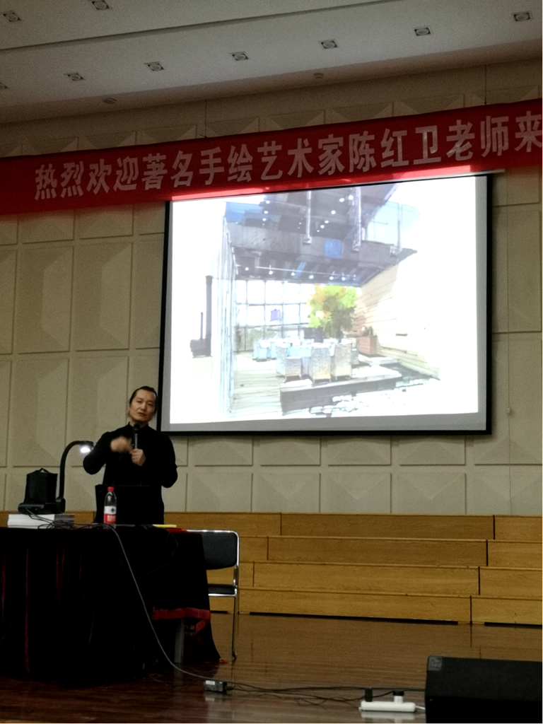 本次报告,为环境设计专业的员工开启了学习手绘的新篇章;为考研的学子点亮了前进的灯塔。艺术楼展厅陈列的陈红卫老师手绘作品,为全院师生提供了丰富的学习、临摹蓝本。