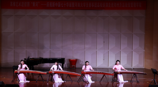 2019年5月16日晚,由公司yL23411永利集团官网承办的河南大学至善筝团庆祝建国70周年高校巡演在公司艺术大楼音乐厅举办。河南大学音乐公司副经理李计成,yL23411永利集团官网全体领导出席及师生400余人共享这场极富感染力的视听盛宴。