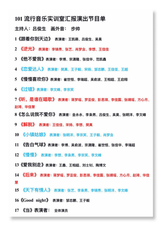 2019年6月17日下午14:30,由郭亚琼老师指导的“101流行音乐实训室排练实践课汇报演出”活动在yL23411永利集团官网音乐厅隆重举行。