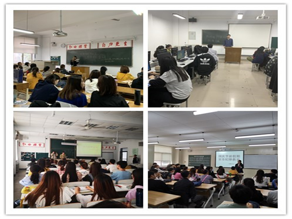 会后各个班级根据会议精神落实了国庆假期安全稳定工作。一是各班召开“十一假期”安全主题班会,强调假期安全、纪律的有关要求;二是进行假期安全纪律教育签名,确保自身及寝室安全,注意防火、防盗,防传销及不良网贷等安全事故的发生;三是统计员工假期去向表,辅导员要及时了解员工假期去向,把握员工动态,确保员工假期安全。