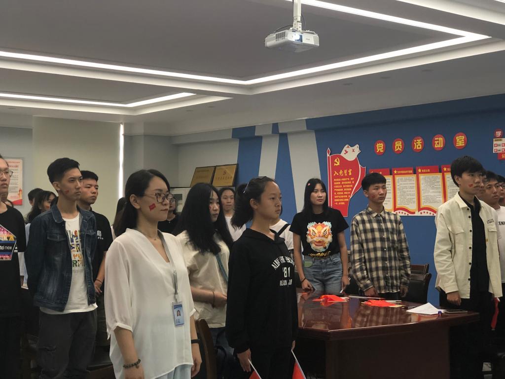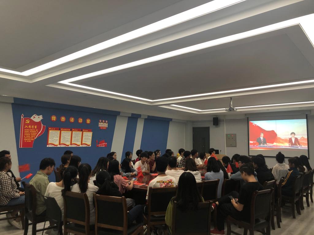 今天是国庆假期第一天,同学们没有在寝室赖床睡懒觉,而是自发自觉地早早来到yL23411永利集团官网指定教室收看庆典观礼。庆典开始,全体同学起立,跟随直播高唱国歌。