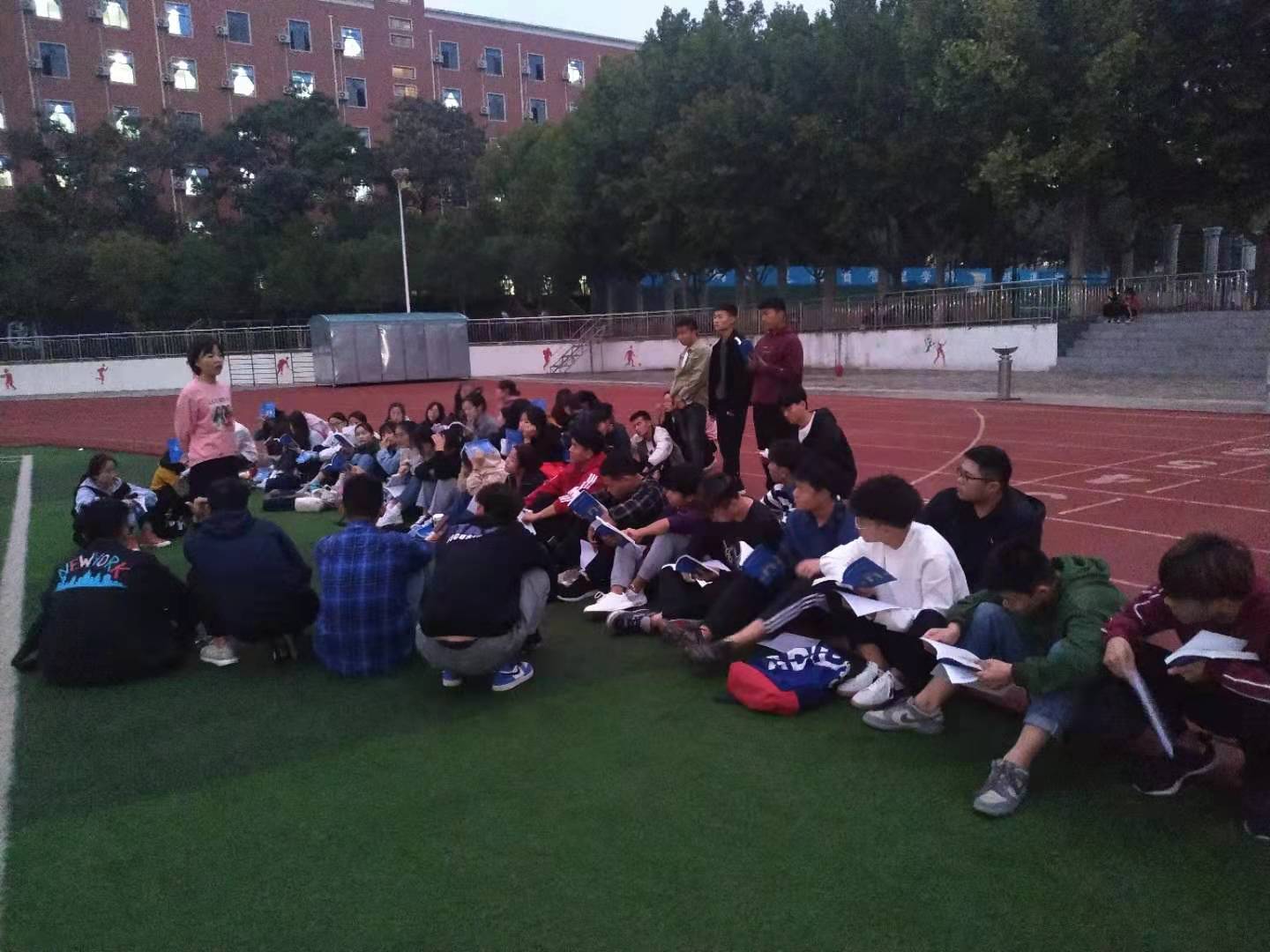 除此之外,为了让同学们熟悉校园热爱校园,辅导员老师带领同学们在美丽的校园一角学习讨论员工手册,在欣赏美丽校园的同时进行学风建设。