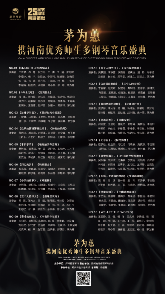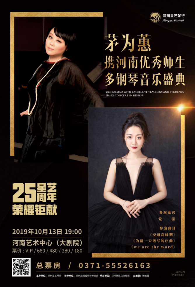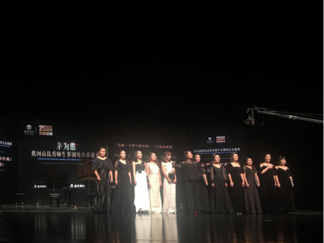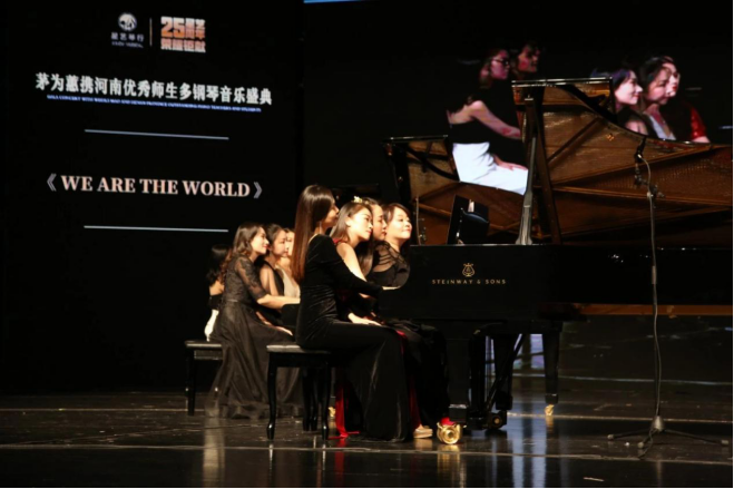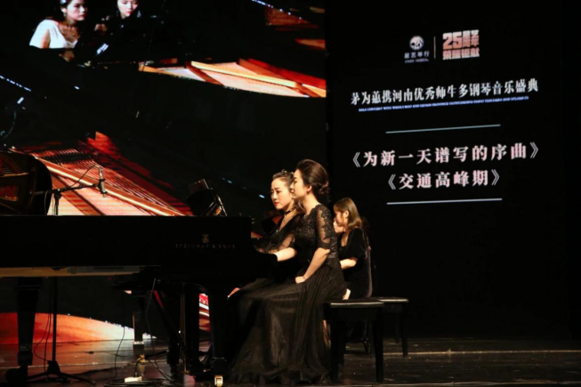 2019年10月13日晚,经历五个多月精心筹备,这场由郑州星艺琴行主办的茅为蕙携河南省内多位优秀师生共同带来的别开生面的多钢琴音乐盛典于河南省艺术中心大剧院圆满落下帷幕。公司公司党漾老师受邀参演,并演奏了《交通高峰期》《为新一天谱写的序曲》《we are the world》。