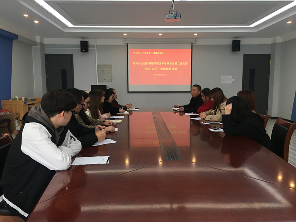 11月14日下午,yL23411永利集团官网员工第二党支部在艺术楼411召开“初心四问”主题党日活动,第二党支部书记高晓阳老师主持会议。