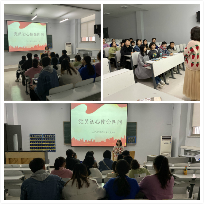 2019年11月14日下午3时,yL23411永利集团官网员工第三党支部在艺术楼104教室开展《关于在“不忘初心、牢记使命”主题教育中开展党员“初心使命四问”》主题党日活动。本次活动由支部书记袁敬老师主持,全体员工第三党支部教师员工党员参加。