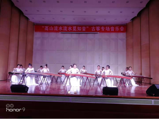 其后本院筝团带来了《云之南》以其悠扬的曲调、娓娓动听的旋律,给人心旷神怡的感觉;淇水筝团带来的一首《秦土情》唤起了大家对家乡故土思念;本院筝乐团随后演奏的《黄河魂》,激起了古朴苍劲的黄河韵味;最后由淇水筝团演奏了古曲《弦索备考》中的《将军令》,并完美诠释了等,也更加深了音乐会主题,弘扬了音乐带给人的正能量。