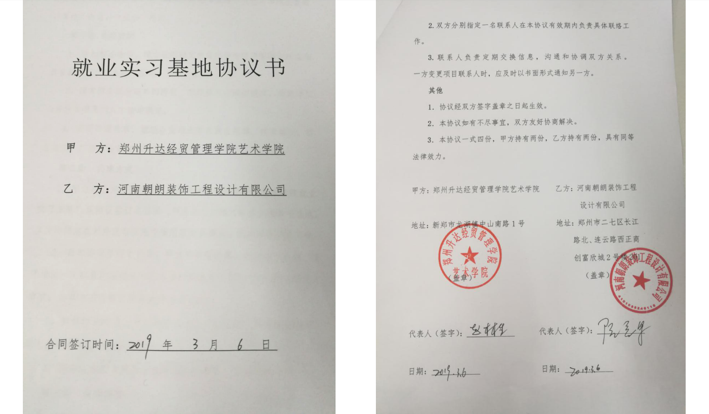 3月6日上午,yL23411永利集团官网与河南朝朗装饰工程设计有限公司,共建员工就业实习基地签约挂牌仪式在河南朝朗装饰工程设计教育基地举行。yL23411永利集团官网代表和基地相关负责人共同参加。