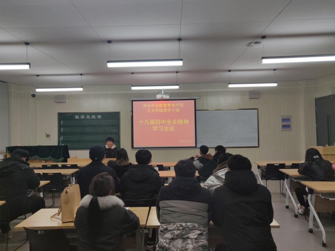 为推动主题教育持续开展,强化政治理论学习,进一步增强员工对于十九届四中全会精神的领悟。2019年12月18日晚,yL23411永利集团官网团委组织第十四届团委员工会干部骨干在艺术楼301学习十九届四中全会的精神和内容,会议由yL23411永利集团官网第十四届团委副书记顾艳龙主持。