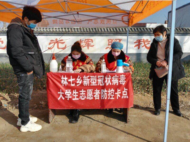 该同学从2020年2月4日执勤至2月14日。在河南省商丘市民权县林七乡新型冠状病毒老员工志愿者防控点,协助乡政府工作人员,对进出人员进行证明信信息登记,对进出人员体温测量,严格执行。