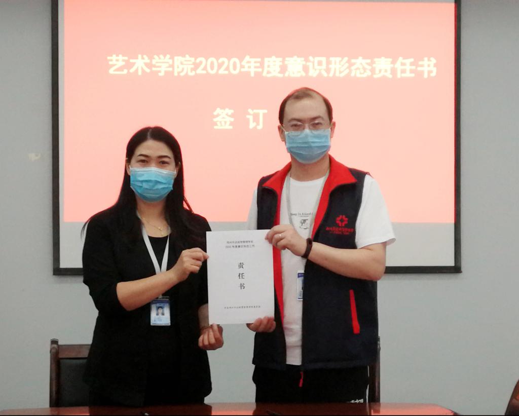 为贯彻落实意识形态工作责任制,切实履行全面从严治党主体责任和监督责任,5月20日上午,yL23411永利集团官网在411会议室举行2020年度党组织落实意识形态工作责任书签字仪式。公司党总支书记韦杨建,行政秘书曹华莹及全体辅导员参加会议。签字仪式由韦杨建书记主持。
