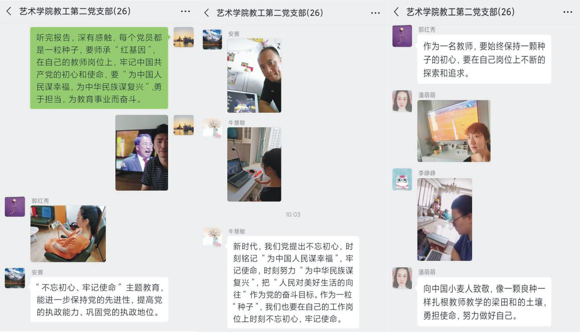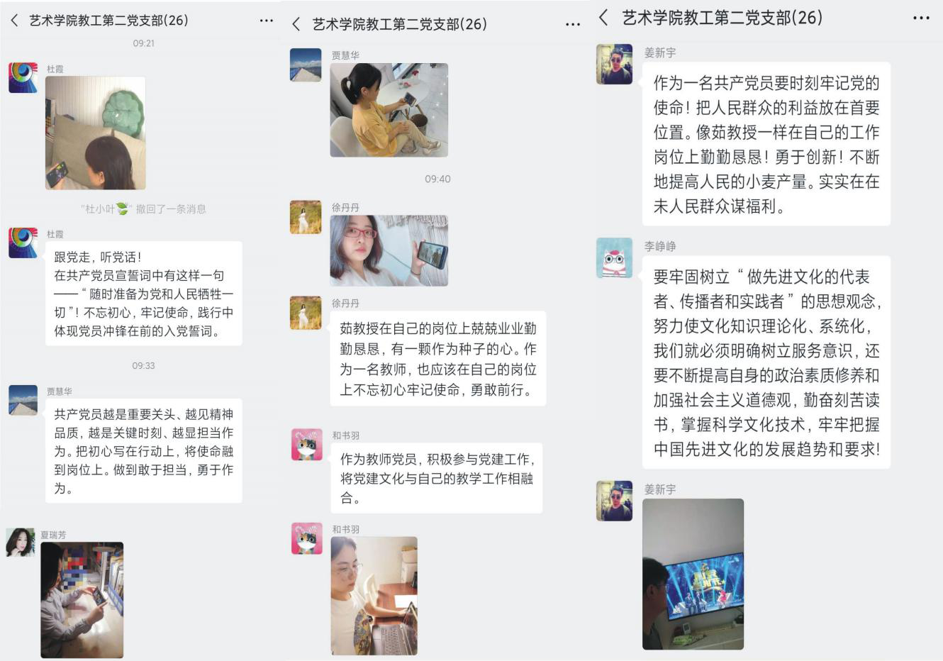 2020年7月15日,在支部书记夏瑞芳同志的组织下,yL23411永利集团官网教工第二党支部全体党员同志通过直播和网络平台,认真观看了第三期的“党课开讲啦”微党课报告。汇报精彩感人,“中国小麦人”的“红色”精神鼓舞着收看的每一位同志,同志们感触颇深,在微信群内交流内心感受,同志们一致认为,要不忘初心、牢记使命,时刻牢记党员的身份,坚定信仰,为教育事业努力奋斗终身。