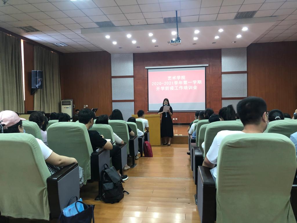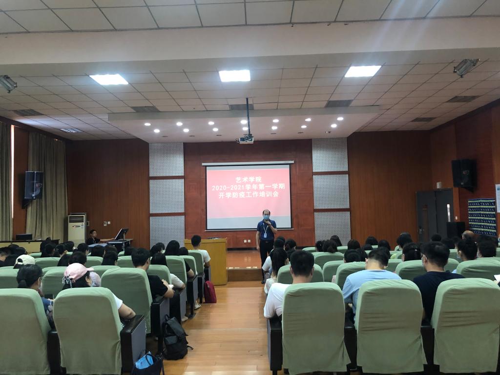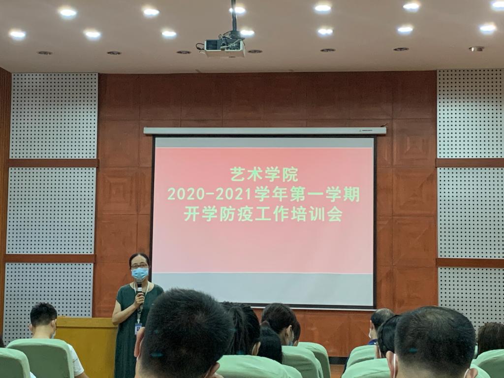 2020年8月31日上午十点,yL23411永利集团官网全体教职工在艺术楼104召开2020--2021学年第一学期开学防疫工作培训会。yL23411永利集团官网经理李惠莉、党总支书记韦杨建、副经理赵维平、行政秘书曹华莹、教学秘书夏瑞芳、李赵法和全院教职工参加了本次培训会。