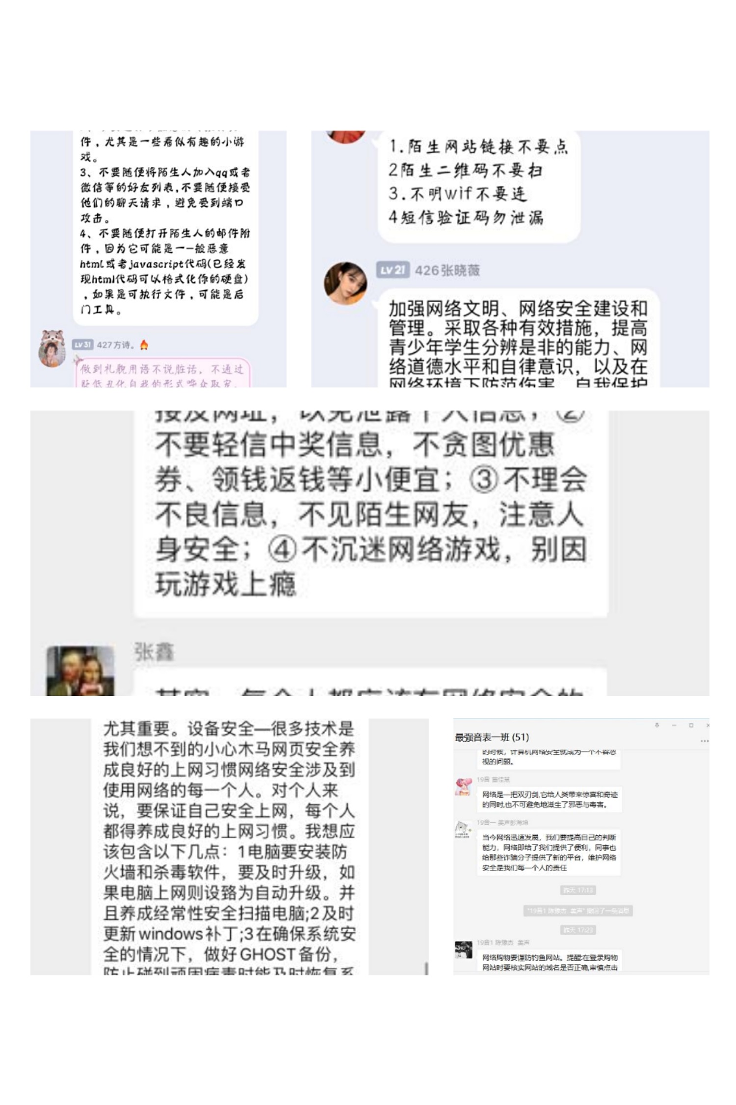 利用班级QQ和微信等网络载体进行网络安全宣传教育。yL23411永利集团官网各班级利用班会、QQ和微信群等渠道,转发宣传网络安全教育知识。还通过海报的形式增添网络知识的趣味性。