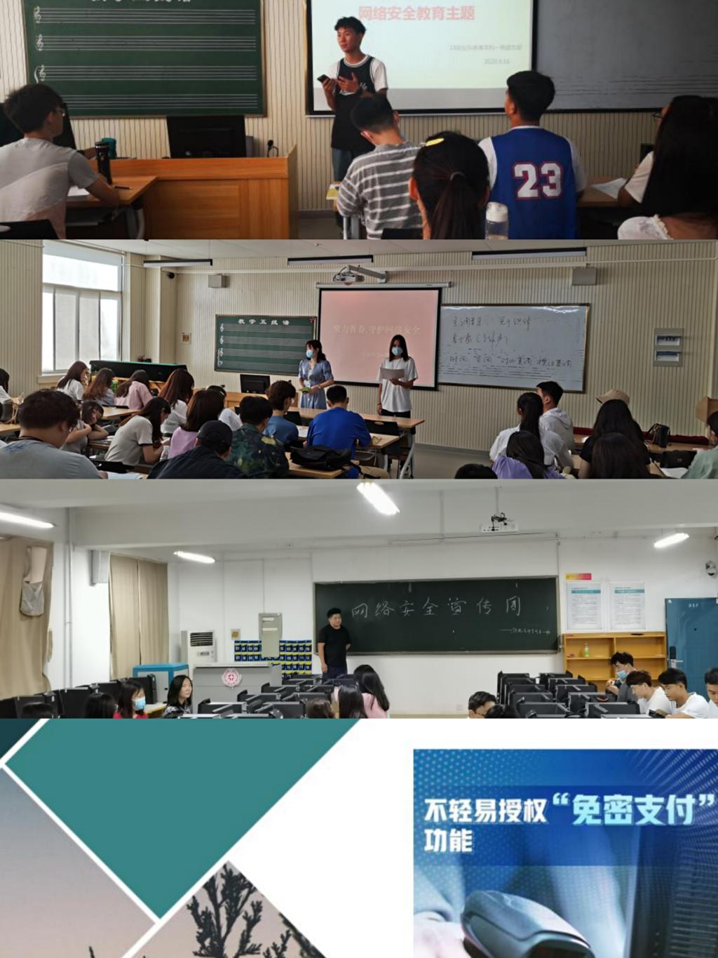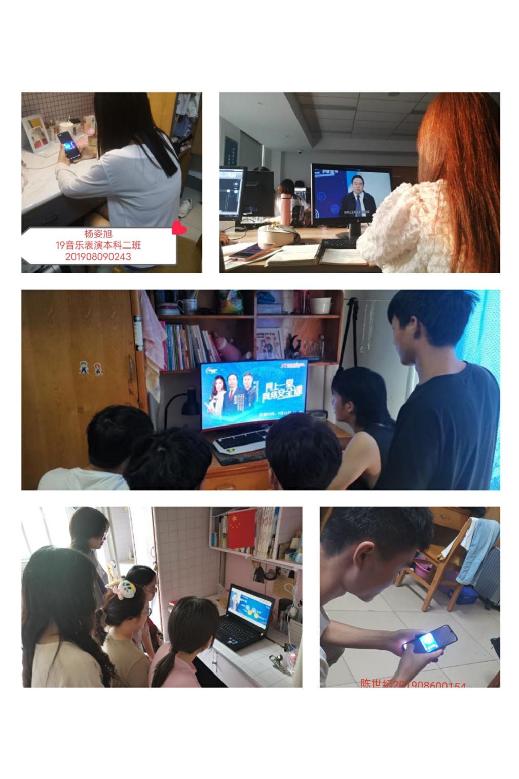 召开主题班会进行网络安全教育。利用线上(如19音乐表演本专科班、17服装设计本专科和20视传专升本等)和线下(如18音乐表演班在袁敬老师的组织下)的方式,为同学们全面讲解了网络安全可能存在的各种隐患,网络购物、免密支付、网络密码设置、免费wifi、app使用授权等身边无处不在的网络现象进行分析讲解,为同学们日常使用网络敲响了警钟。
