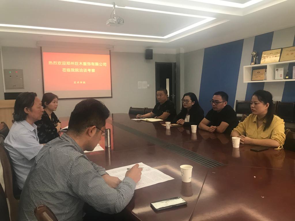 2020年9月29日上午,郑州巨木服饰有限公司徐总监、人力资源部邢总、王总一行三人来公司洽谈合作事宜。yL23411永利集团官网赵经理,校地合作处项目开发科科长王彦雨,服装教研室主任王蓓,就业专员高晓阳在升达经贸管理公司艺术楼411会议室热情接待了徐总监一行,双方就进一步深入加强校地合作、合作开展创新创业活动进行了友好交流。
