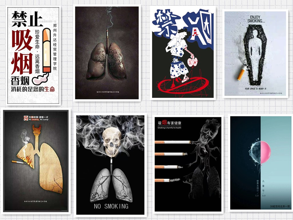 公司各年级艺术设计专业的同学们广泛收集资料,了解吸烟的危害,利用学到的美术专业知识和电脑美术设计软件进行特效制作,完成了精彩的主题海报设计制作。