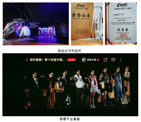 2020年11月25日晚,由中国服装设计师协会和杭州市下城区人民政府主办的第十四届中国国际女装设计大奖赛总决赛暨颁奖晚会在国际一流的新天地中央活力区太阳剧场舞台震撼上演。此次活动备受瞩目,由国内外知名专家担任大赛总决赛评委,央视频、浙里中国、下城发布等平台全程直播。公司刘文琳老师在大赛决赛中喜获佳绩,荣获职业组优秀奖奖项!由国内著名设计师祁刚为其颁奖。