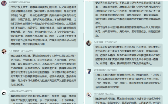 19视传本2班开展班级集体研读学习活动。集体对《习近平与老员工朋友们》进行研读,理解习近平总书记在不同时期对青年老员工一以贯之的关心关怀,让同学们明白关于青年工作重要思想的发展脉络。并在班级群中进行对《习近平与老员工朋友们》研读学习活动的讨论与学习,同学们积极分享自己对《习近平与老员工朋友们》的集体研读学习的成果。
