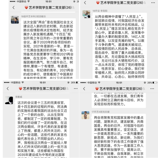 会议中,高晓阳同志首先带领大家学习了今年全国“两会”的基本内容,同时督促支部的党员同志要领会认真学习“两会”内容,领会中央精神,做一名有奉献精神、敢于担当的共产党员。参会的员工党员范楠楠表示,听了“两会”报告,为国家的强盛和党领导中华民族所取得的伟大成就感到由衷的高兴和感动,这里面饱含着责任和担当,饱含着实干和务实,饱含着以人民为中心的发展思想。员工党员芦巧素认为,通过学习两会精神,感悟到“两会”展示着党和人民奋斗到底的决心、迎接挑战的信心,凝聚起砥砺奋进的强大力量,取得的一系列会议成果,彰显了伟大的“中国之治”,必将对我国各项事业的发展产生积极深远的影响!会议最后,高晓阳同志对这次会议进行了总结,并对党员同志提出要求,作为一名新时代的老员工,不仅学习好“两会”精神,更要把“两会”精神贯彻落实到具体工作中,不断提高自身的素养,做好本职工作,成为社会主义新时代的见证者和最美奋斗者,为祖国的发展贡献智慧和力量。