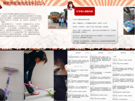 活动二:开展多种多样的特色学习活动。多个班级开展大家一起学习雷锋同志名言语录活动,搜集雷锋同志名言并在班级群中进行分享。19视传本2班则通过班会围绕学习雷锋同志提出的“三个一”活动要求:寻找身边的一个榜样,学习雷锋的一种精神,争做一件好事。19视传本4班更是结合三八妇女节,鼓励班级同学主动分担家务,给妈妈捶背洗脚,通过自己亲身行动去体验父母的辛苦。2019级的共青团员们用行动更好的传承了雷锋精神。