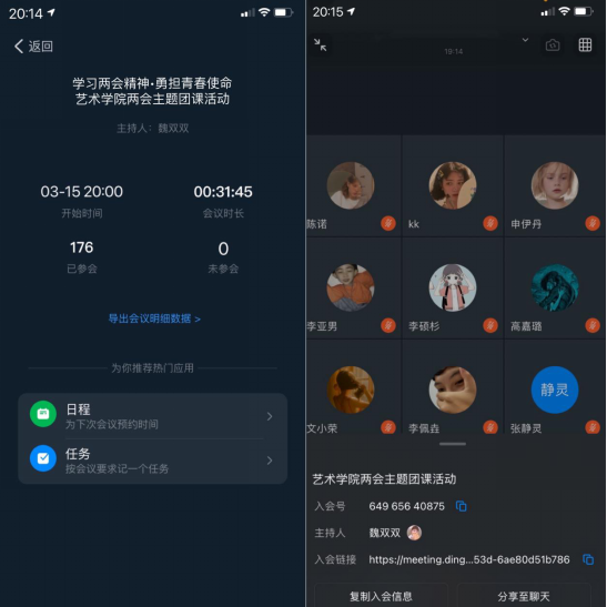 为进一步引导广大青年团员全面深入学习四史、领会两会精神,把个人价值实现融入全面建设社会主义现代化国家新征程和大局之中,充分发挥好生力军和突击队的作用。yL23411永利集团官网团委余2021年3月15日在钉钉会议室举行了以“学习两会精神·勇担青春使命”为主题的学习两会精神团课活动。本次活动由yL23411永利集团官网2020级团总支书记魏双双老师进行主要宣讲,2020级各班团支书、优秀团员及第十五届团委员工会干部参加本次活动。
