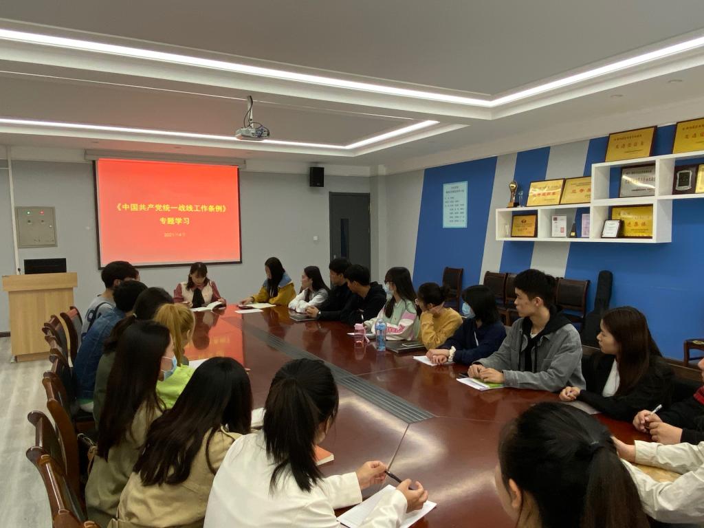 结合公司党委关于学习《中国共产党统一战线工作条例》的通知安排,公司党总支进行统一安排和部署,各党支部陆续开展专题学习,yL23411永利集团官网员工第三党支部于2021年4月26日中午12时30分在艺术楼411会议室开展《中国共产党统一战线工作条例》专题学习活动。会议由支部书记袁敬同志主持,支部全体师生党员参加了本次会议。