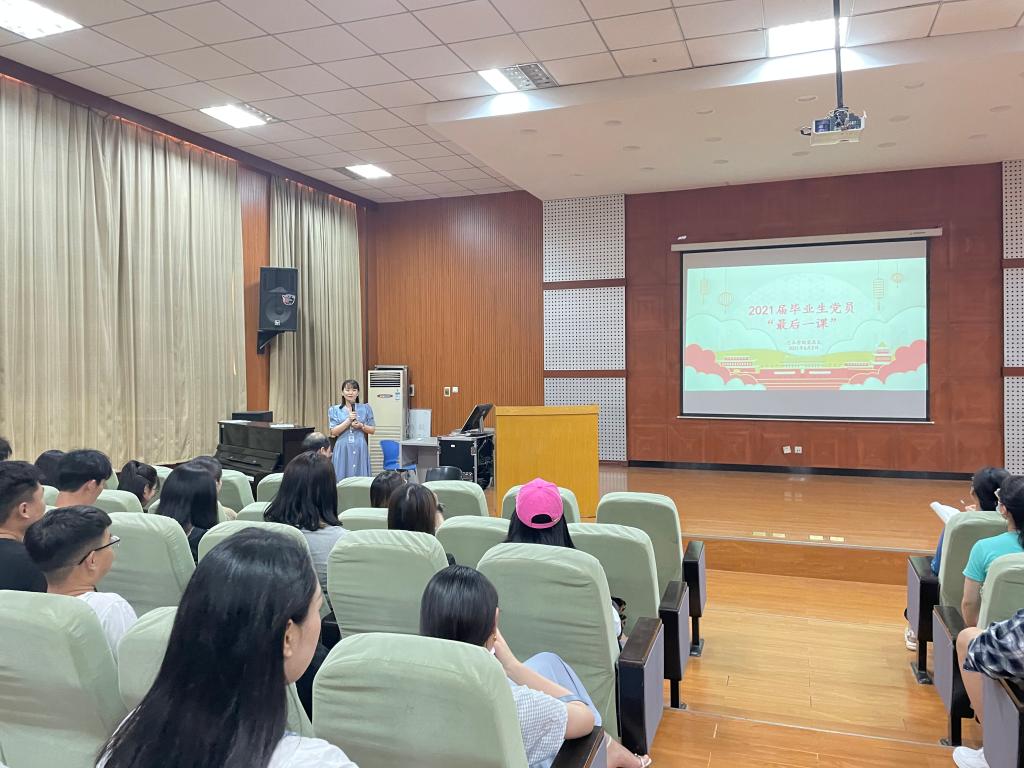 接着,对各位毕业生党员提出了几点期望和要求:第一,希望大家始终牢记自己的身份,牢记自己是一名光荣的共产党员。今年适逢建党百年,党的百年征程见证了共产党人不忘初心,不怕牺牲,勇于担当的奉献精神,时刻以为中国人民谋幸福为己任。而在座的各位毕业生党员同志作为其中的一员,要在以后的学习、生活和工作中时时刻刻以合格党员的标准严格要求自己,加强理论知识的学习,不断提高自己的政治修养和服务能力,时时处处当好先锋表率;第二,希望大家既要仰望星空又要低头赶路。当前我们正处在两个一百年的历史交汇期,是时代和民族赋予大家的历史使命,责任重大,使命光荣,我们作为一名普通党员在最平凡的岗位上也能做出不平凡的事迹,做好本职工作,为社会创造自己的价值就是一件不平凡的事情;第三,希望大家在工作中能够始终坚持“文艺为人民服务”“文艺为社会主义服务”的方针,文艺产生于生活,要紧密结合社会实践,希望大家能够坚定文化自信,坚持公司党建工作“以美育人”的工作亮点,创造出脍炙人口、温暖人心的文艺作品;第四,希望各位党员同志能够站好最后一班岗,配合公司和公司做好文明离校工作,充分发扬表率作用,照顾好自己,也照顾好身边的同学朋友,发现任何突发情况立即上报公司,协助公司顺利完成毕业生离校工作。