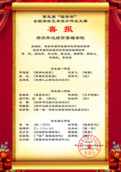 日前,yL23411永利集团官网接到“国青杯”喜报,本次第五届“国青杯”全国高校艺术设计作品大赛,公司共获得员工组一等奖5名、二等奖9名、三等奖9名的好成绩,庞继红老师获评本届作品展评优秀组织教师,侯珂、张利利、李大伟、杨卫波、潘萌萌、郭称心、庞继红、李润瑞老师获得本届作品展优秀指导教师。