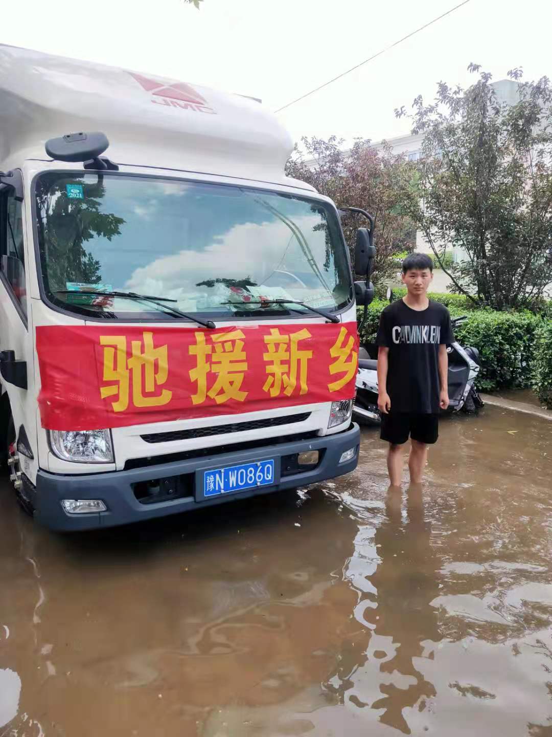 在郑州汛情稍有好转之时,新乡告急,河流决堤,多个村庄城市被淹。陈顺治同学又开始组织自己身边的亲友,开着自家的货车,向新乡市购买捐赠了800件矿泉水。到达新乡市后就随当地志愿者来到了牧野区丰乐里村,帮助村民搬运物资、询问村民救援情况、有无村民被困等情况。