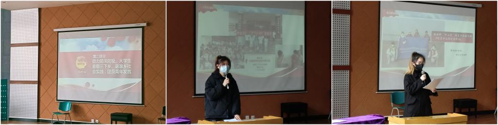 会议第二项,助力防汛防疫、老员工暑期三下乡、返家乡社会实践,团员青年发言。刘安然同学上台讲述黄腾用镜头记录嘉应观防疫的故事,希望青年员工能够把这种投身社会实践的优秀作风延续下去,能够把青马工程的精神践行的更好;19级视传一班的刘文文同学分享自己支教经历,希望能够带动同学们积极参加公益活动,发扬艰苦奋斗的精神,传承优秀美德。能世婵同学分享参加黄河流域保护生态实践活动的经历,激励当代青年、老员工,应牢记我们的职责与使命,积极投身黄河流域保护项目中,为黄河生态文明可持续发展贡献青春力量。