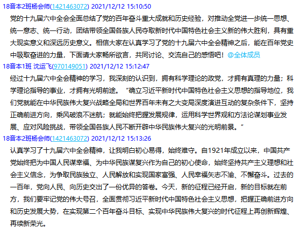 宣讲结束后,本支部全体师生党员同志结合自身工作学习实际情况再次开展了线上讨论。