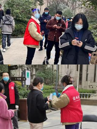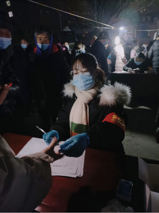 刘营营同学在假期积极加入郑州市二七区淮河路街道社区职员服务队伍,进行志愿服务工作。接到全民核酸的指示后,刘营营同学负责维持秩序以及核酸检测信息采集工作,协助医护人员加快检测速度,做到快速有序的应对疫情下的挑战。在采集过程中,她悉心指导部分老年人扫码,不让每一个人落队,高效高质地完成集体核酸检测工作。党团员志愿者协同社区人员,分工明确,各司其职,确保检测工作有序进行,刘营营同学从他们身上学到了优秀的品质,用实际行动诠释了中国共产党员“全心全意为人民服务”的宗旨。