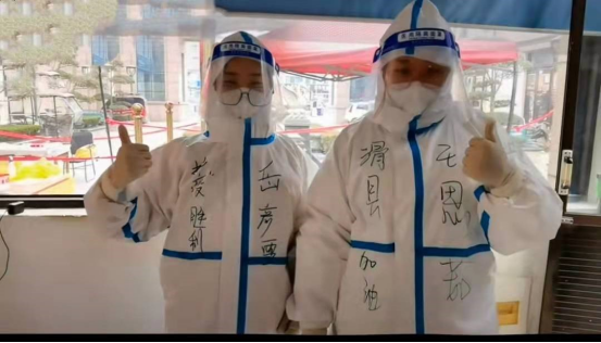 郭瑞阳同学说:“天气寒冷,大家都在户外进行着工作,但我们上下一心,团结合作,终于不负众望,把所有居民的核酸检测及时的做完。希望这场没有硝烟的战争早点结束,在这里特别感谢医护人员的付出,感谢所有志愿者为这次疫情防控工作做出的努力!”