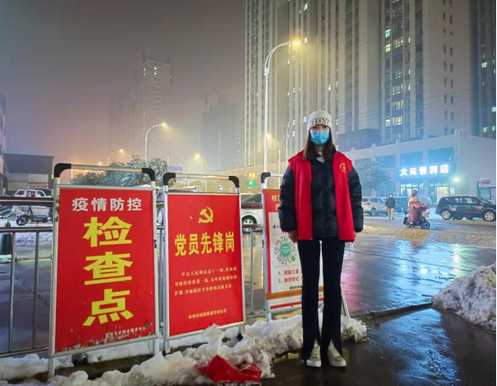 寒假期间,王月同学在看到林州市团委的招募令后,积极响应市团委号召,踊跃报名参加林州市京林社区志愿者,在志愿者工作中,主要工作是核酸检测采集信息和对外来返林人员登记信息,查看行程码,健康码。每天在零下几度的早上开始核酸检测工作,一遍遍按着一米线的要求整理队伍,帮助群众录入检测信息,给出入小区的人员进行测温、登记、消毒。虽然辛苦又疲惫,但是仍然圆满完成了交到手中的基层防疫工作。