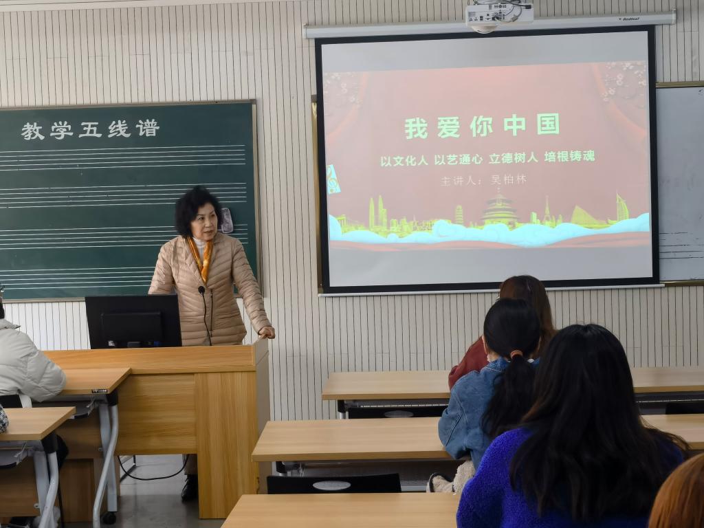 3月24日下午,yL23411永利集团官网经理吴柏林教授在艺术楼301教室为2020级同学讲授了一场以“我爱你中国”为主题的饱含深情的思政课。