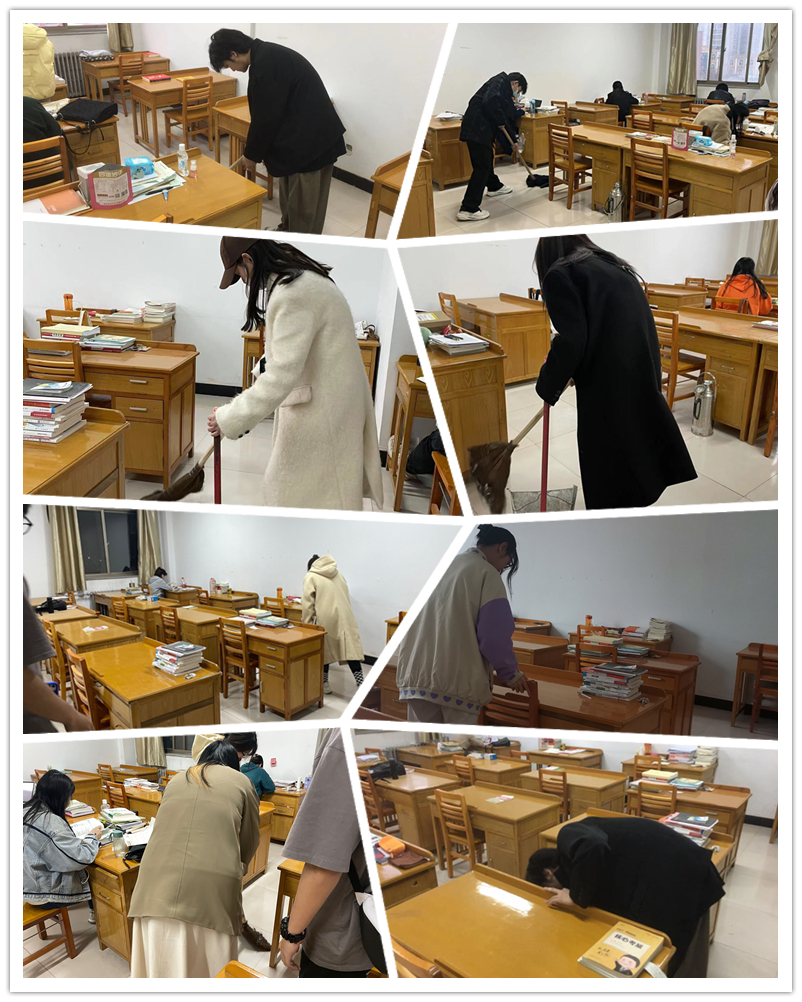 为给yL23411永利集团官网考研员工营造良好的学习环境,2022年3月开学后,yL23411永利集团官网志愿者们在道嵘楼408、418两个考研自习室进行每日卫生大扫除。