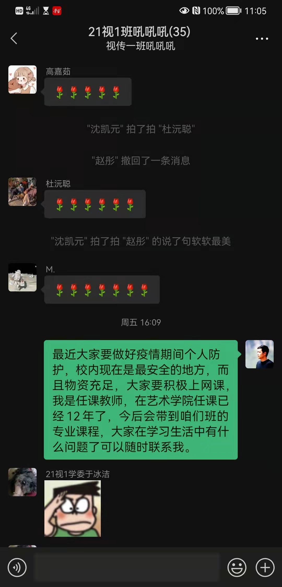李大伟老师在班级会议中一一列举同学们在疫情防控时期最常见的心理问题,还提供了解决的“良方”。活动中,大家发言积极畅所欲言,又做了些团建小游戏既促进了同学们情感的交流,又让大家在轻松愉快的氛围中领悟到了保持乐观心态的重要性。通过班主任举行的系列活动,提高了同学们在公司疫情防控期间的自我调节能力,增强了心理素质,同时在班级内营造了一种关注,重视心理健康的氛围,增强了班级凝聚力,为今后的课程学习提供了坚实的基础。