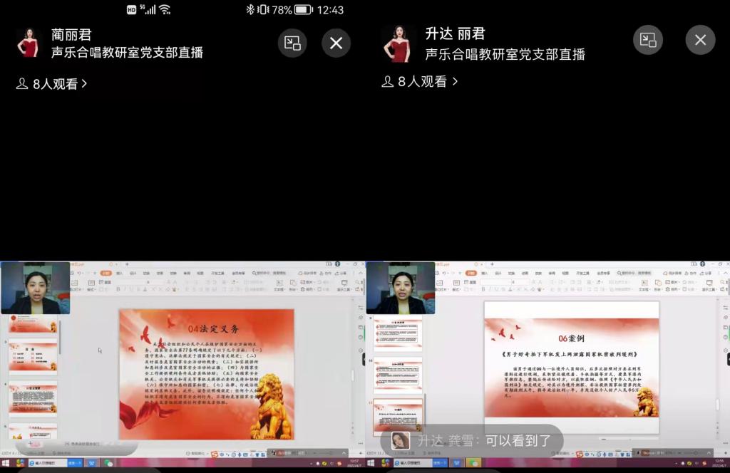 4月7日,yL23411永利集团官网声乐合唱教研室党支部全体教师党员在线上开展“全民国家安全教育日”专题学习会,会议由支部书记蔺丽君主持并进行讲解。