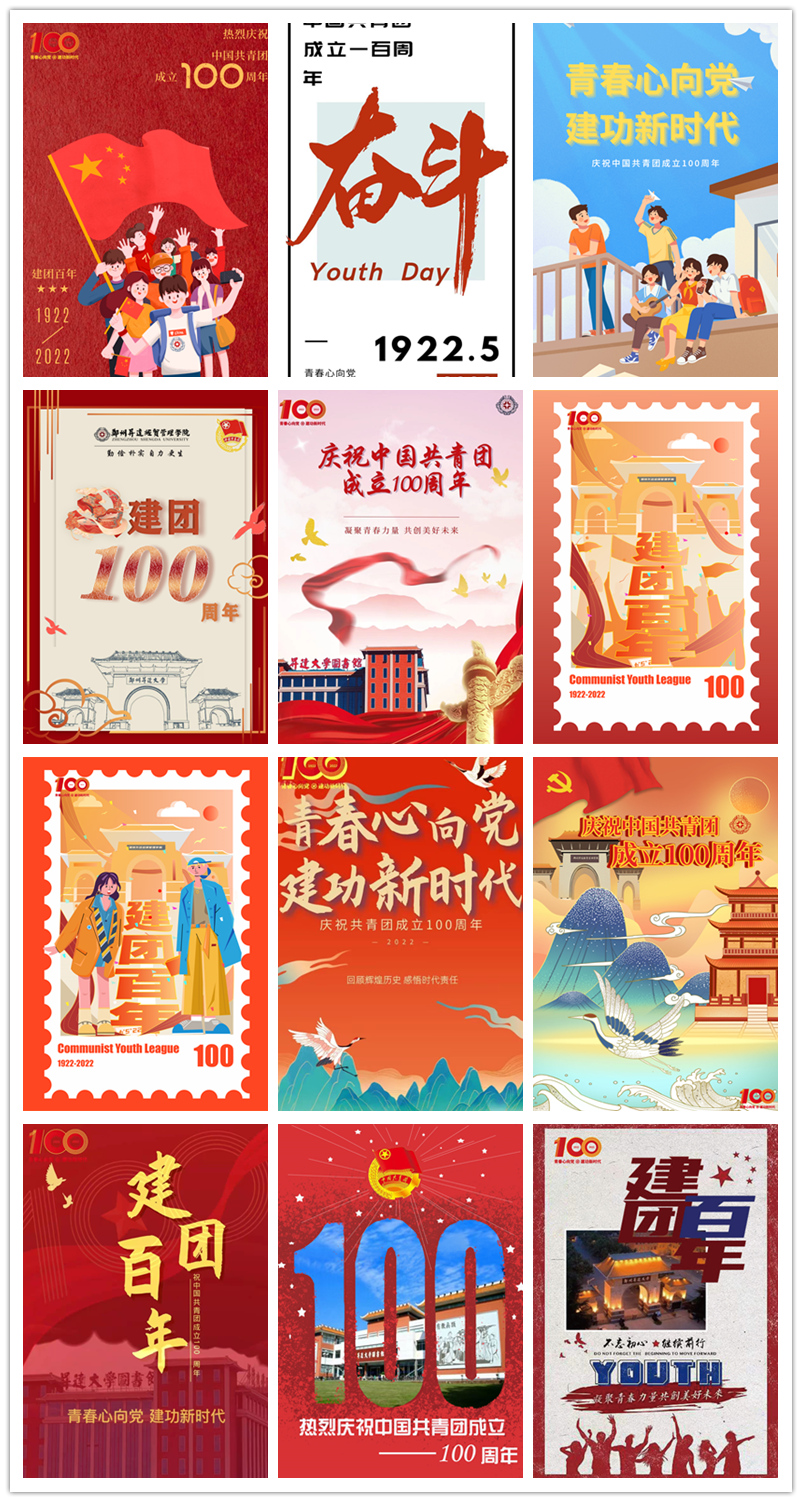 2022年4月27日至5月2日,yL23411永利集团官网团委举办了“喜迎二十大,庆祝建团100周年”校园海报设计征集活动。来自各年级艺术设计专业的100余名同学参加了活动。