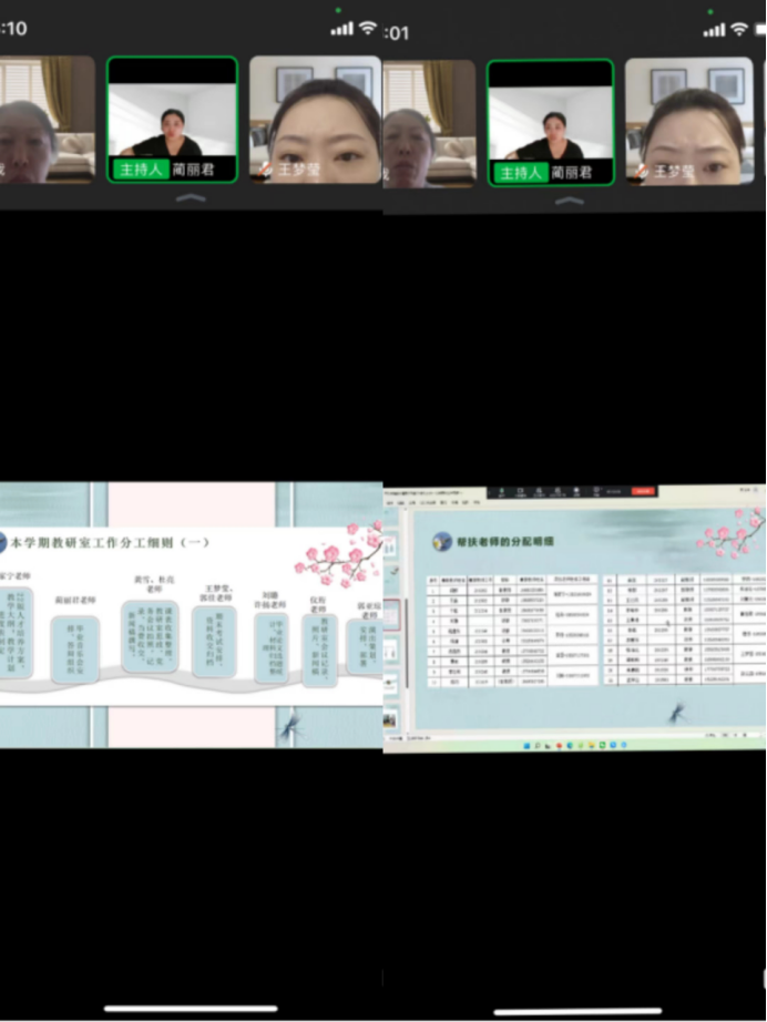 另外本次会议特别对课堂教学提出了新的要求,其中包括了网课注意事项、教学流程和上课基本要求。最后对教师听课、评课提出了明确的安排。这次会议对教研室本学期的各项工作进行了明确的安排,各项工作都能做到责任到人,每位老师也能明确自己的分工,不仅提高了教研室的工作效率,更是提高了教研室教师的合作凝聚力。
