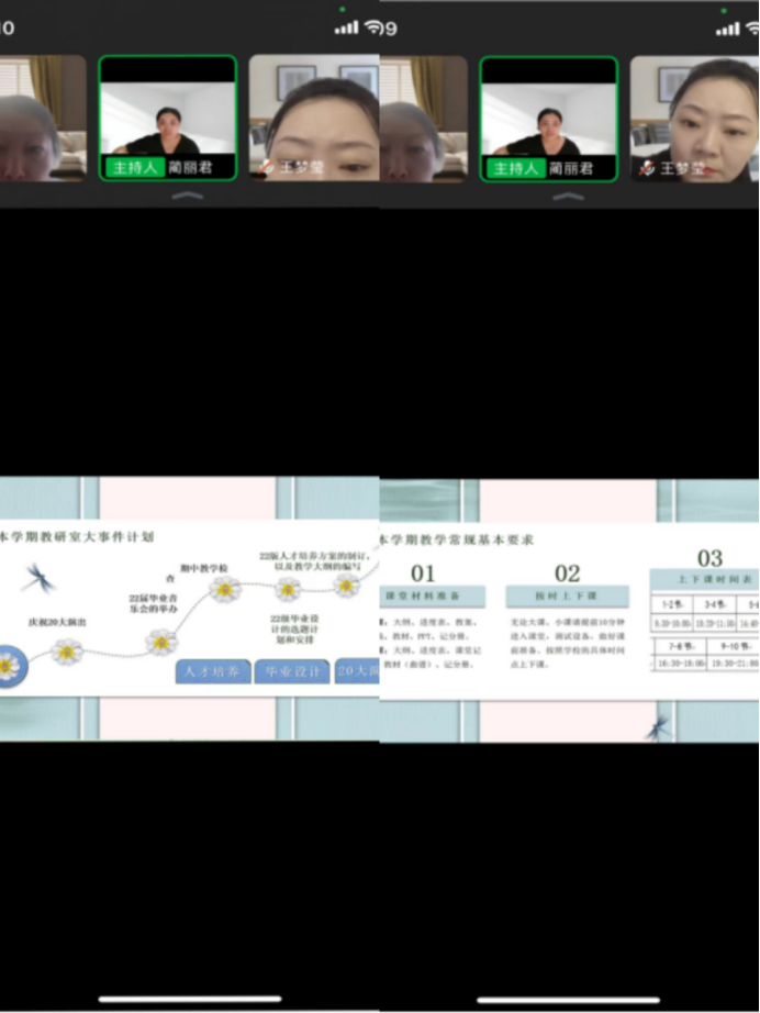 2022年8月26日声乐合唱教研室于钉钉平台召开了2022-2023第一学期教学工作会议,会议确定了教研室新学期的工作重点,并对各项工作做了详细的部署。会议由蔺丽君老师主持,全体教研室教师参加会议。