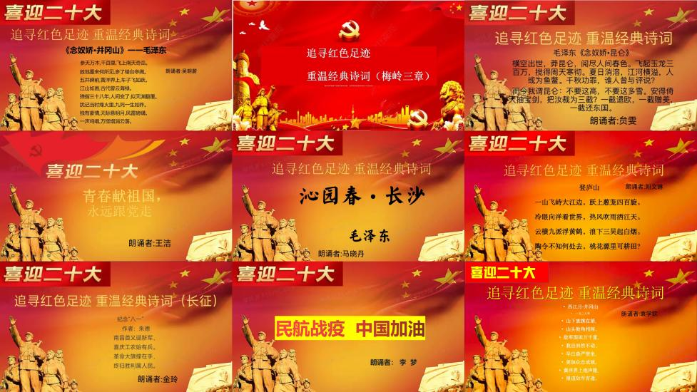 2022年10月13日中午公共艺术教研室、服装与服饰教研室和空中乘务教研室联合党支部为迎接党的二十大的召开、成功举办线上诗词朗诵会。联合党支部8名党员和2名积极分子共10人全员参与本次活动,以诗咏志,抒发爱党爱国爱社会主义之情,歌颂华夏儿女荣光,踔厉奋发、激情昂扬。