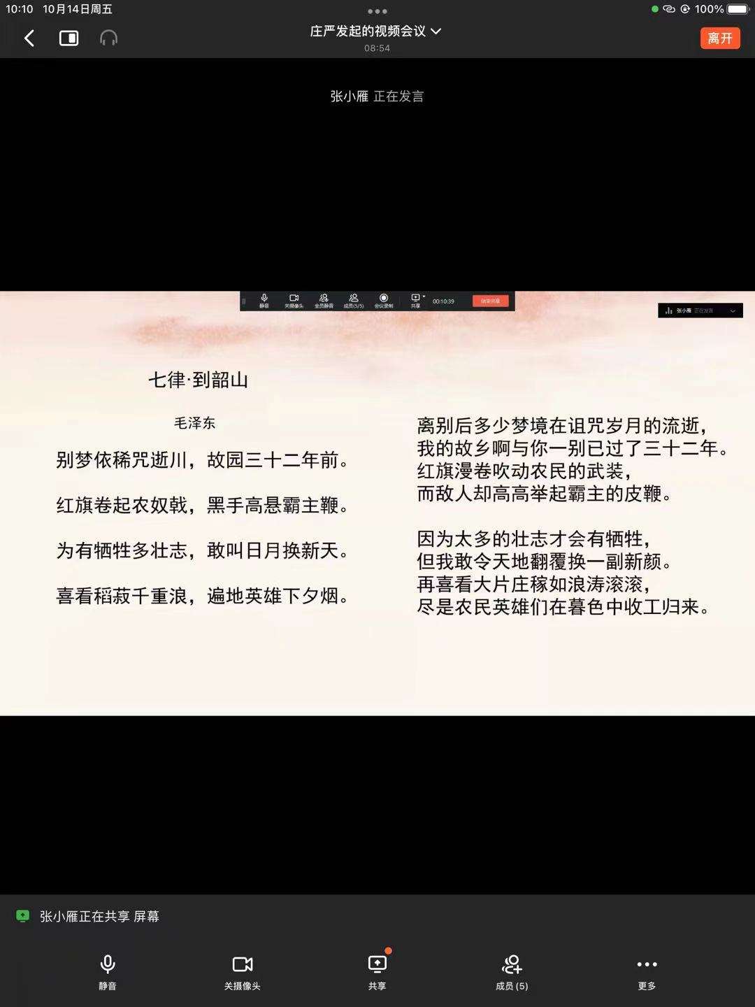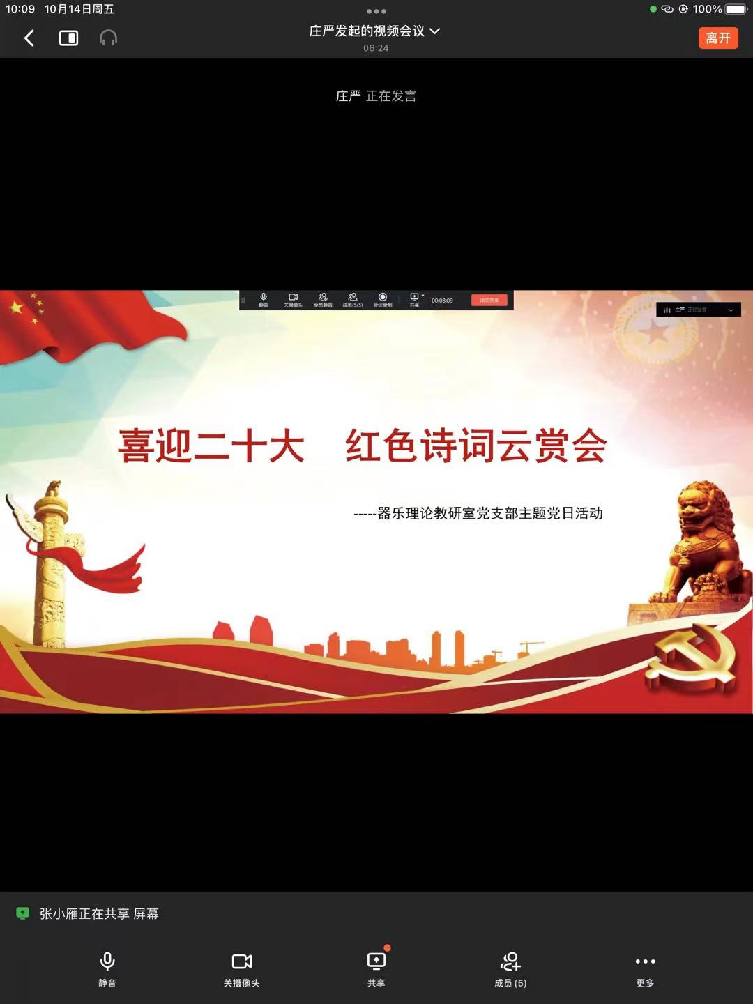 喜迎二十大的召开,2022年10月13日下午器乐理论教研室党支部进行线上“喜迎二十大 红色诗词云赏会”党日主题活动。