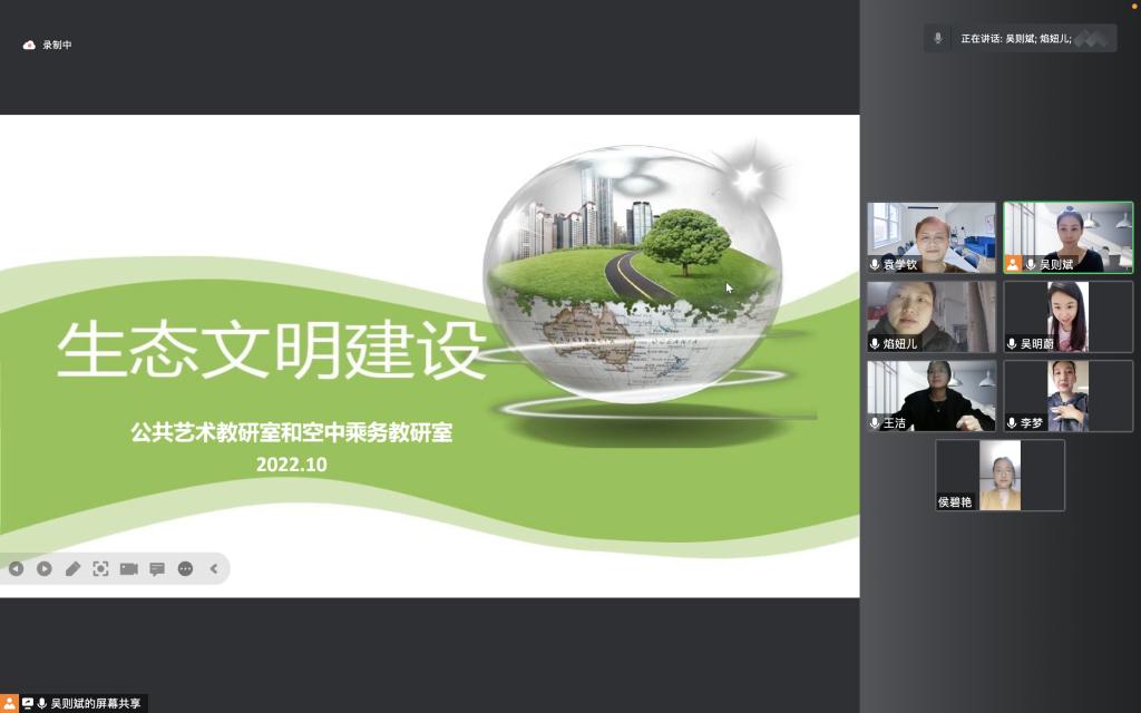 10月28日中午,公共艺术教研室和空乘教研室在线联合开展生态文明教学研讨活动。