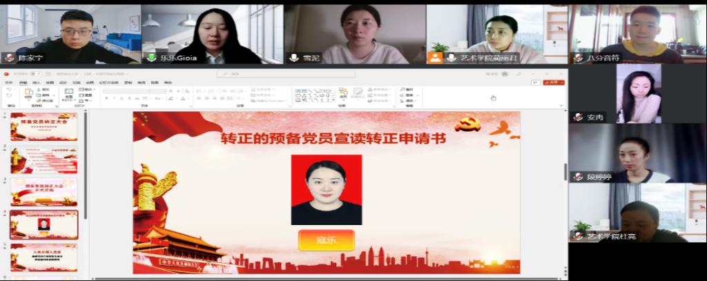 2022年12月15日下午,yL23411永利集团官网声乐合唱教研室党支部召开支部预备党员转正线上会议,会议主要讨论关于寇乐同志预备党员转正事宜。本次会议由声乐合唱教研室党支部书记蔺丽君同志主持,参会人员有声乐合唱教研室党支部10位正式党员、1位预备党员,2位正式党员请假,会议生效。