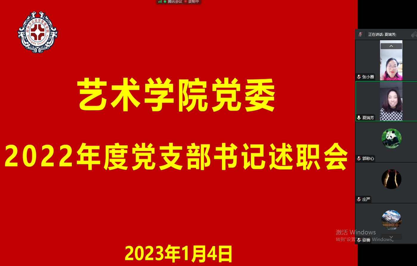 2023年1月4日下午14:30,公司党委通过腾讯会议召开2022年度党支部书记述职会。本次会议由公司党委副书记夏瑞芳同志主持,公司党委书记张小雁、党委委员及全体支部书记参加本次大会。